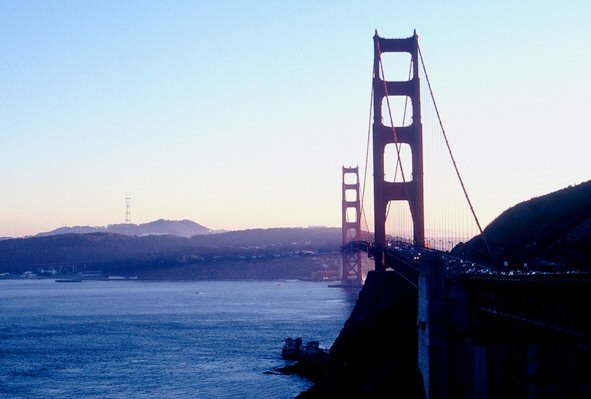 また、もう一つの写真は、逆に、湾の反対側から、金門橋を入れて、大学の方角を撮ったものです。