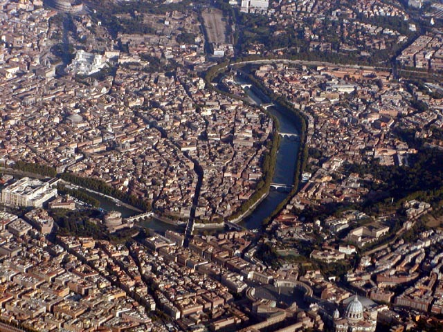 今回のローマは珍しく北風で、街の真上を通ってから、 一度南へ出てからの着陸でした。