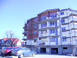 以前から契約済みのフラットに早速入居。実はこのフラット、新築なるもまだ出来上がっていない。豪雪で工事が遅れたとはオーナーの言。取敢えず自分のフラットの中はほぼ出来ていたが、外壁もテラスも未完成のままだ。入った日は電気工事中で工事の終わる夜まで電気もなし。目下別棟も建築中で工事は延々と続きそうである。今でこそ外観も少しは格好が付いてきたが、入居時は写真のような状況だった。まあこの利点は建築工法の違いが良く分かると言うことか。分厚いレンガを積み重ね、その上に発砲スチロールを張り、更に薄いモルタルを塗装、あとはカラーの吹き付けで出来上がり。地震のない国は実に簡単で羨ましい限りだ。